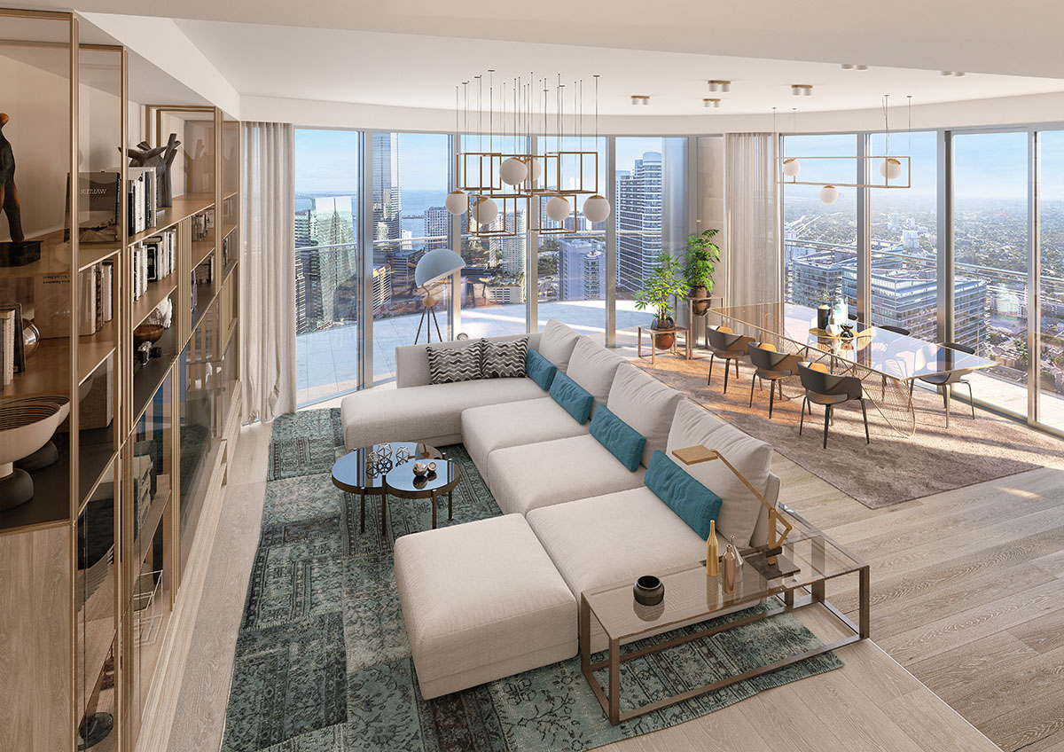Enjoy the spectacular views of the bay, ocean and the city from your balcony or large terraces.